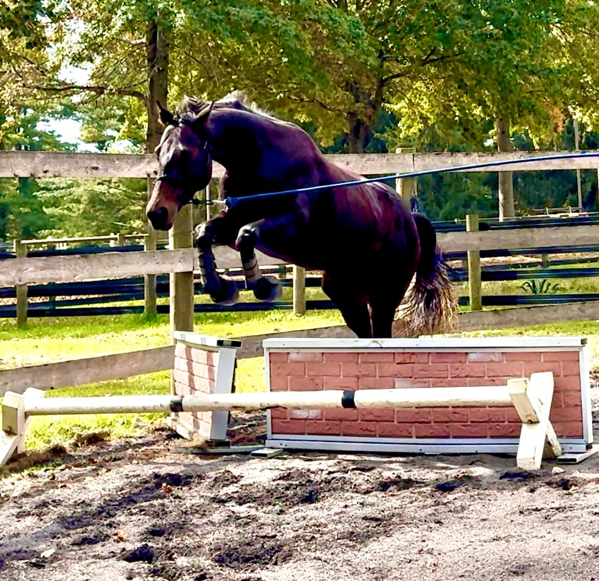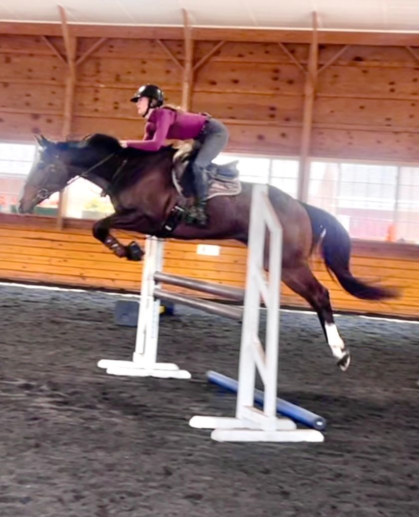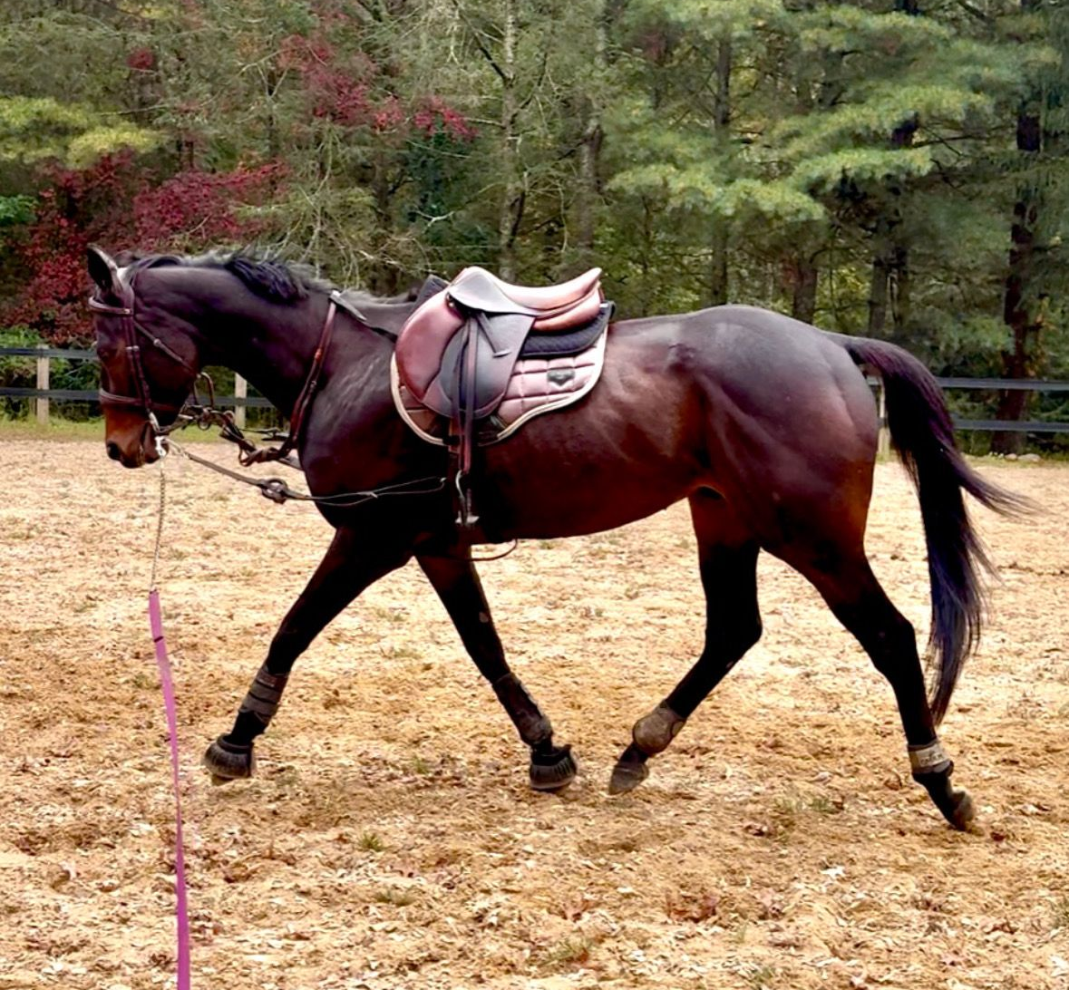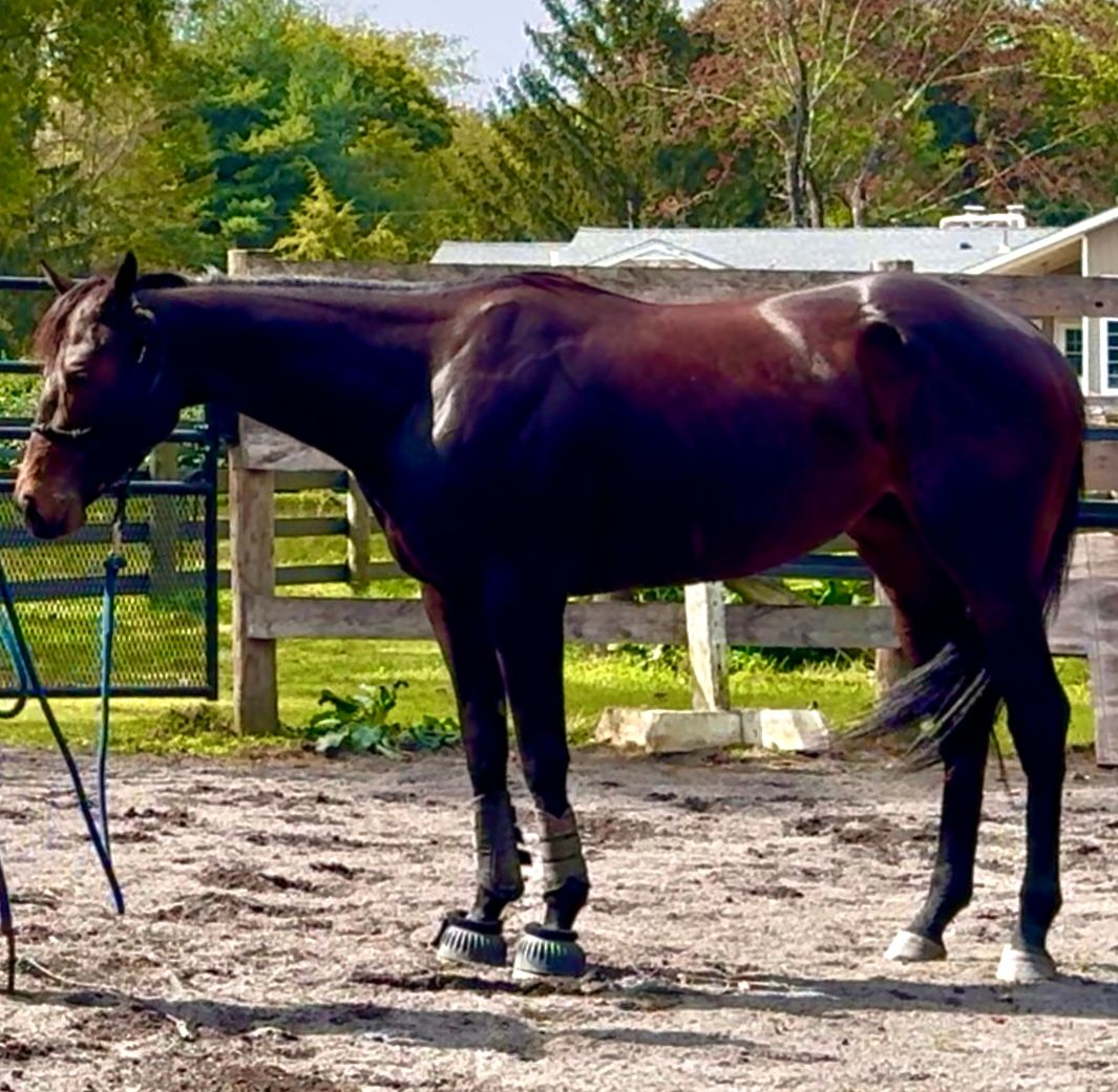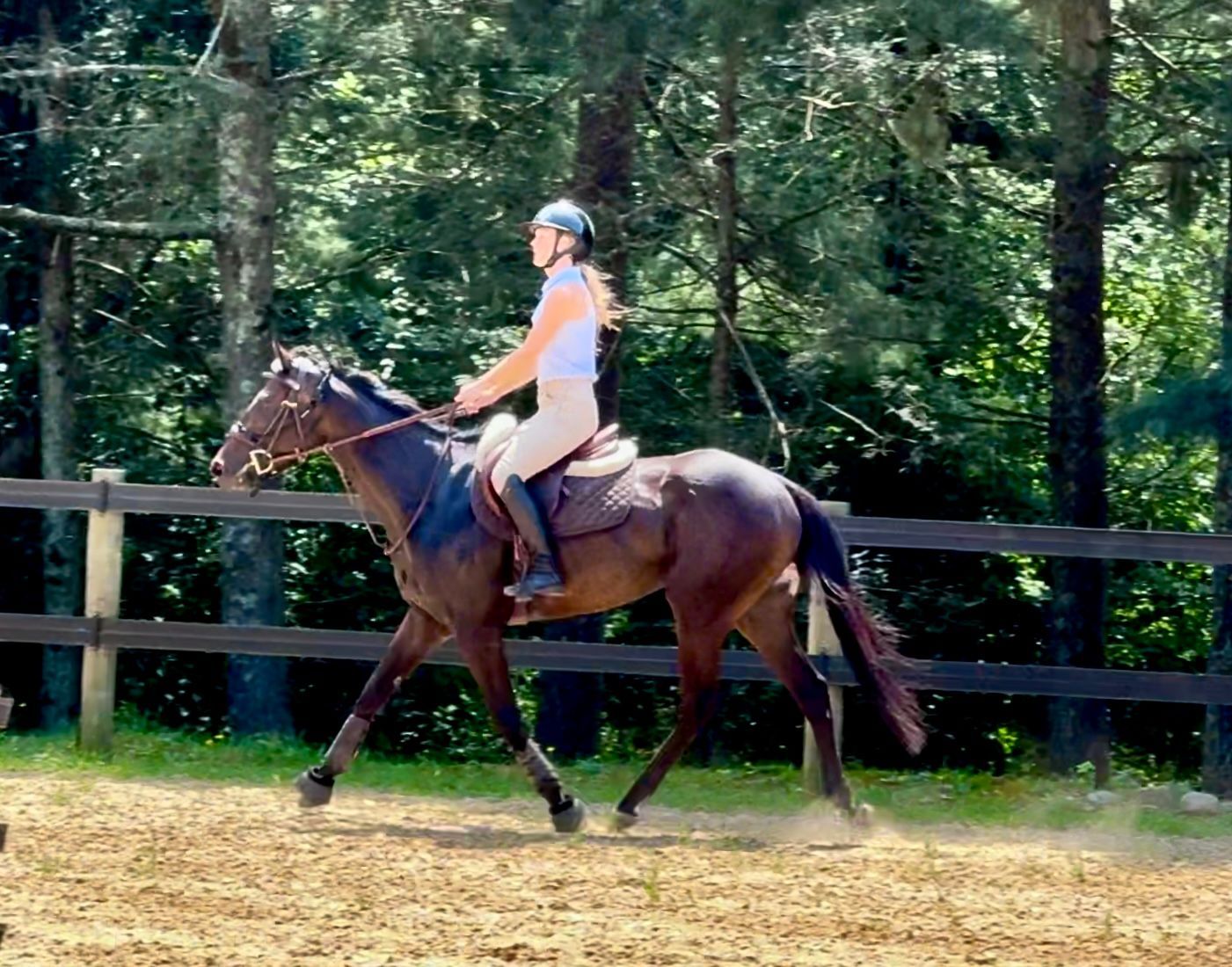 Holy Guacamole aka Cado 16hh 2015 OTTB 15 starts on the track with winters off and breeder owned his entire life before me. Retired with no injuries. This horse would love to be someone’s all around horse, trail horse, hunter pace, dressage or flat horse. Good on the crossties, for farrier, and vet. Easy to handle on the ground. Began his show jumping training in Dec 2022 with me. Free jumped 3'6. Very well broke on the flat. Really cute mover, great feet, thick type build. Sane and sound.