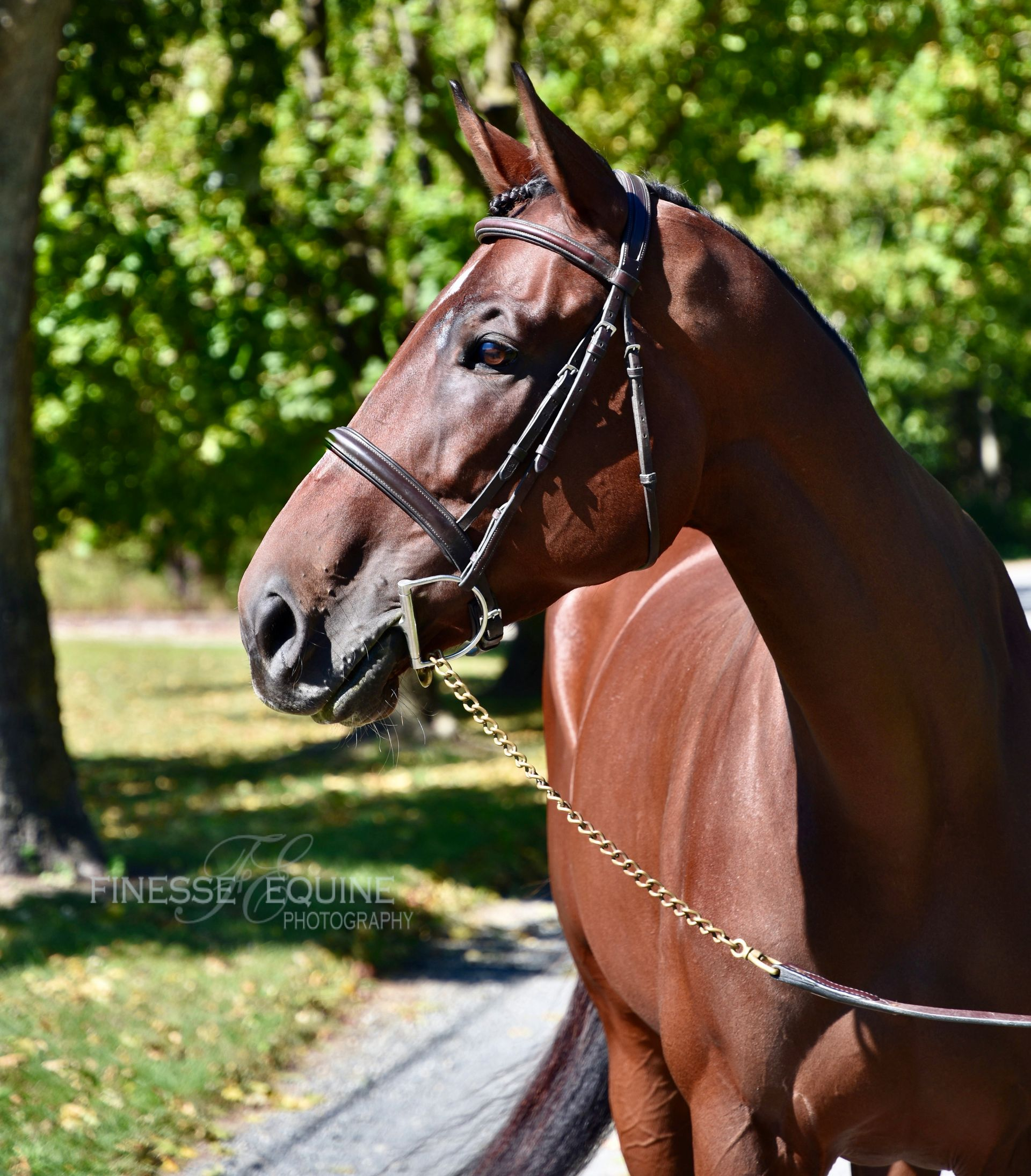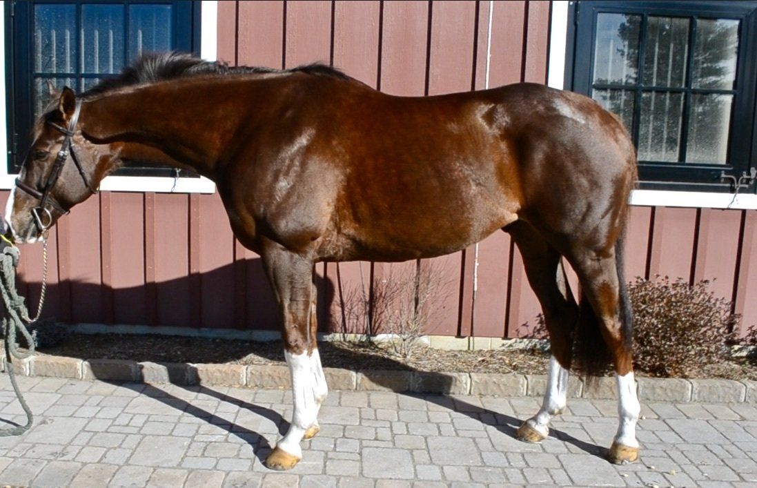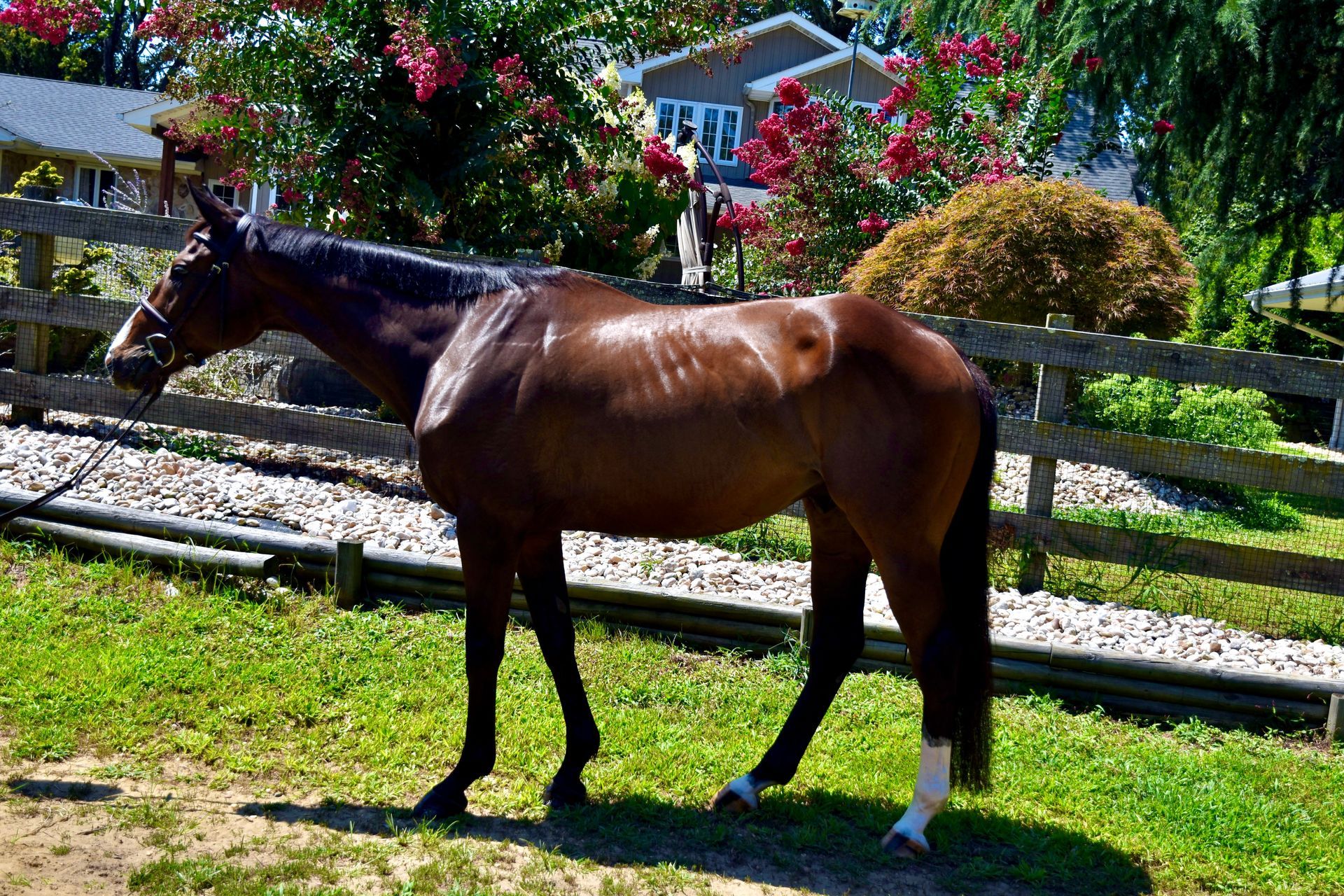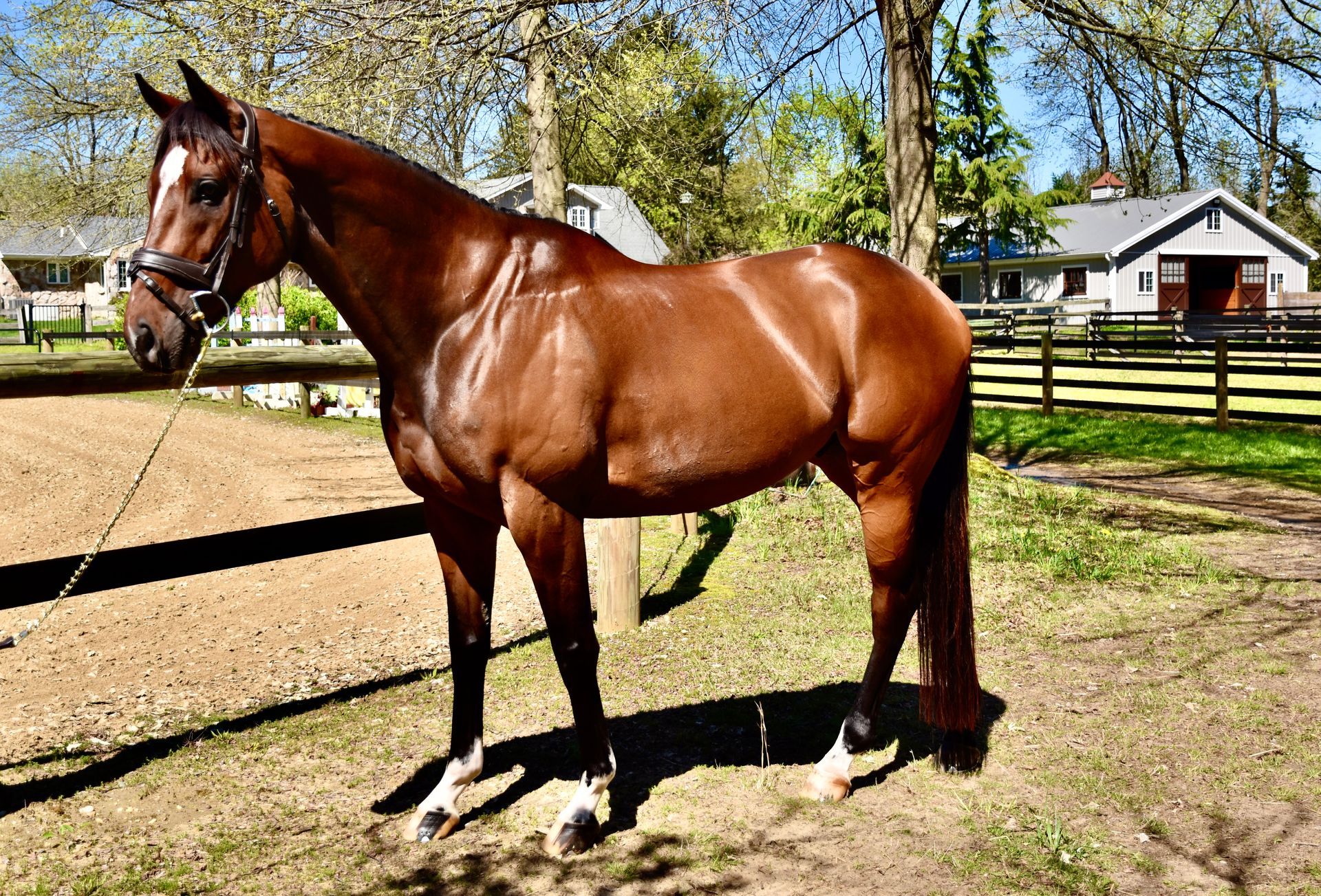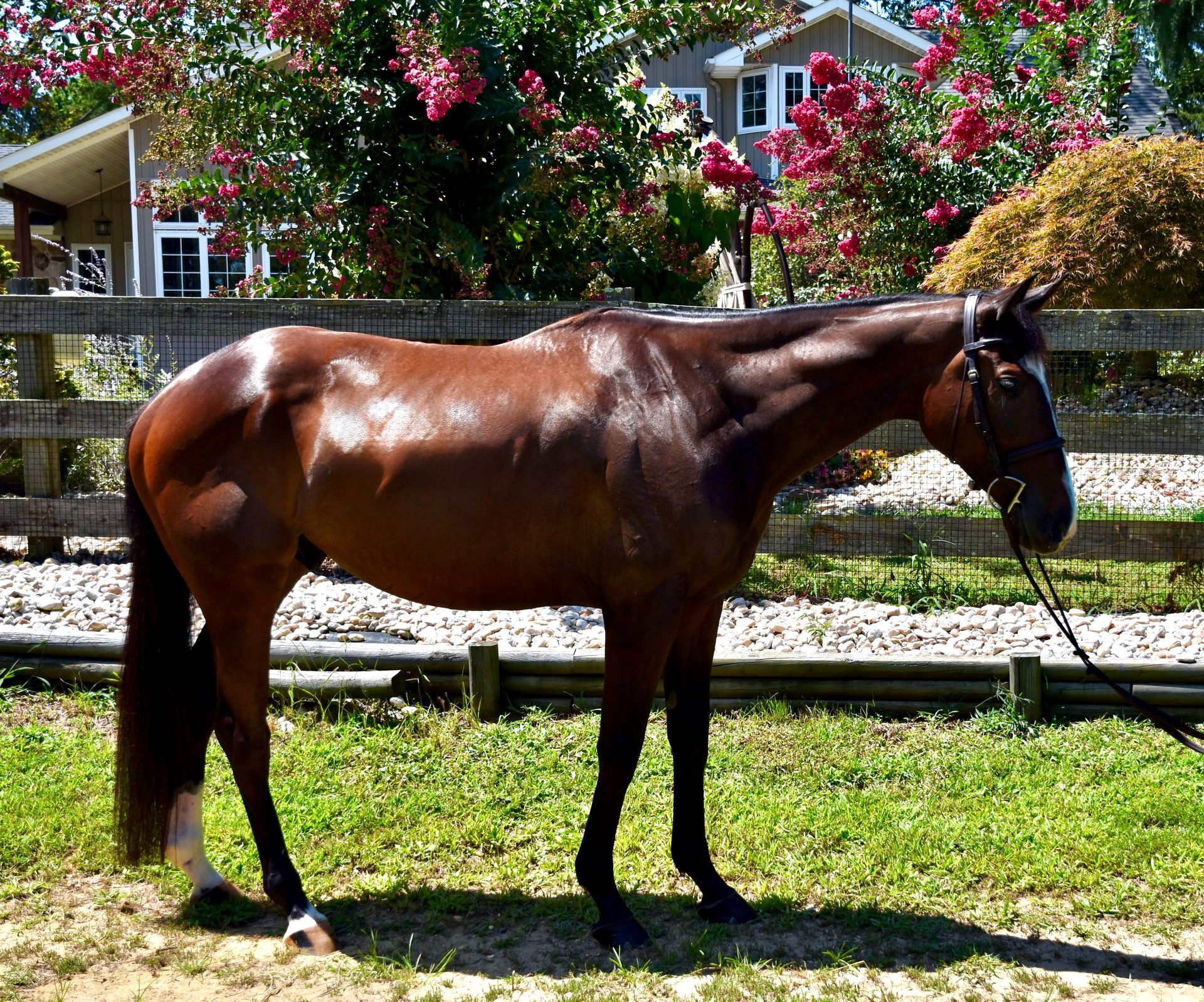 There is nothing better than a dappled dark bay with chrome. This mare has a lovely front end over fences. Her movement is spectacular and she has a heart of gold.