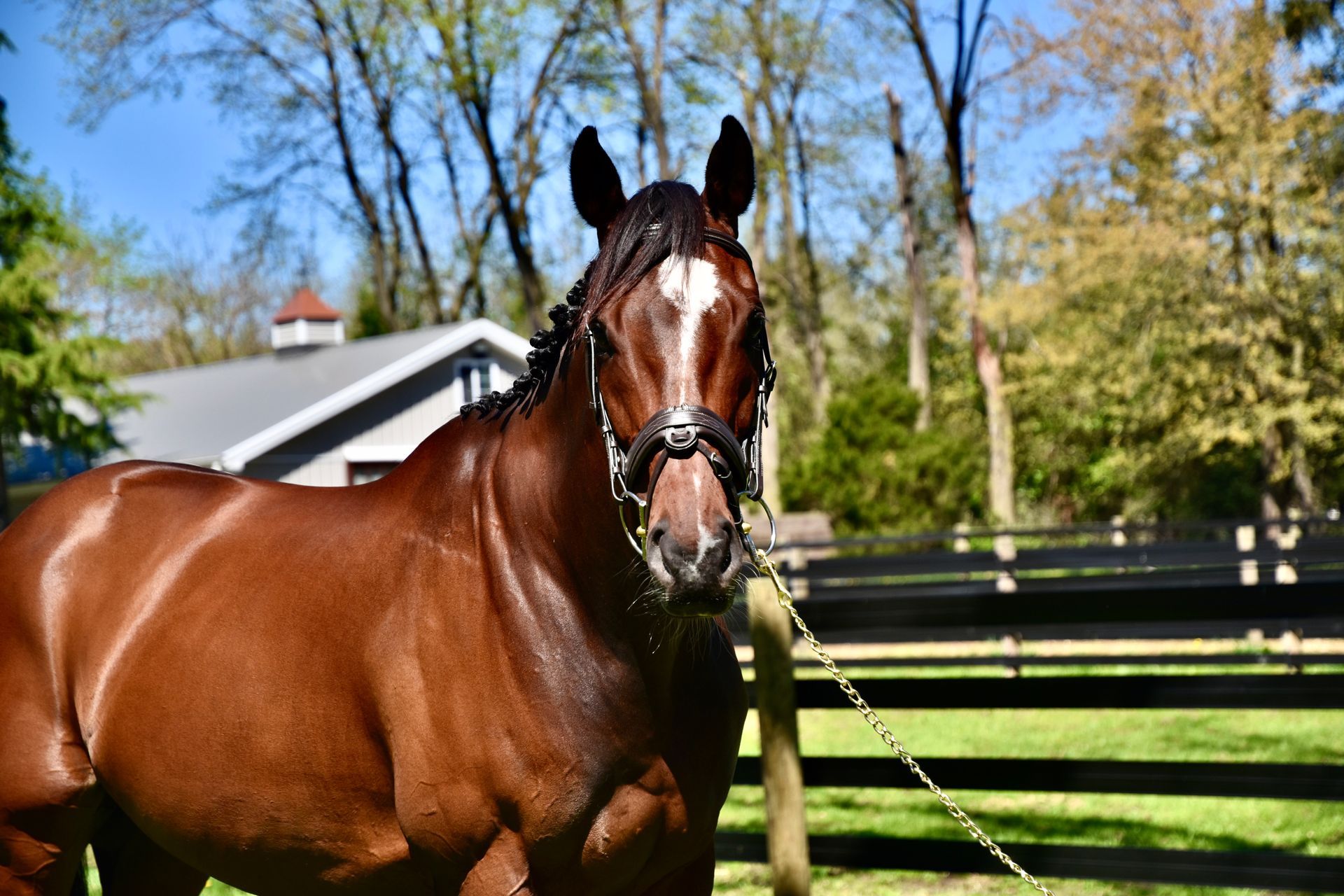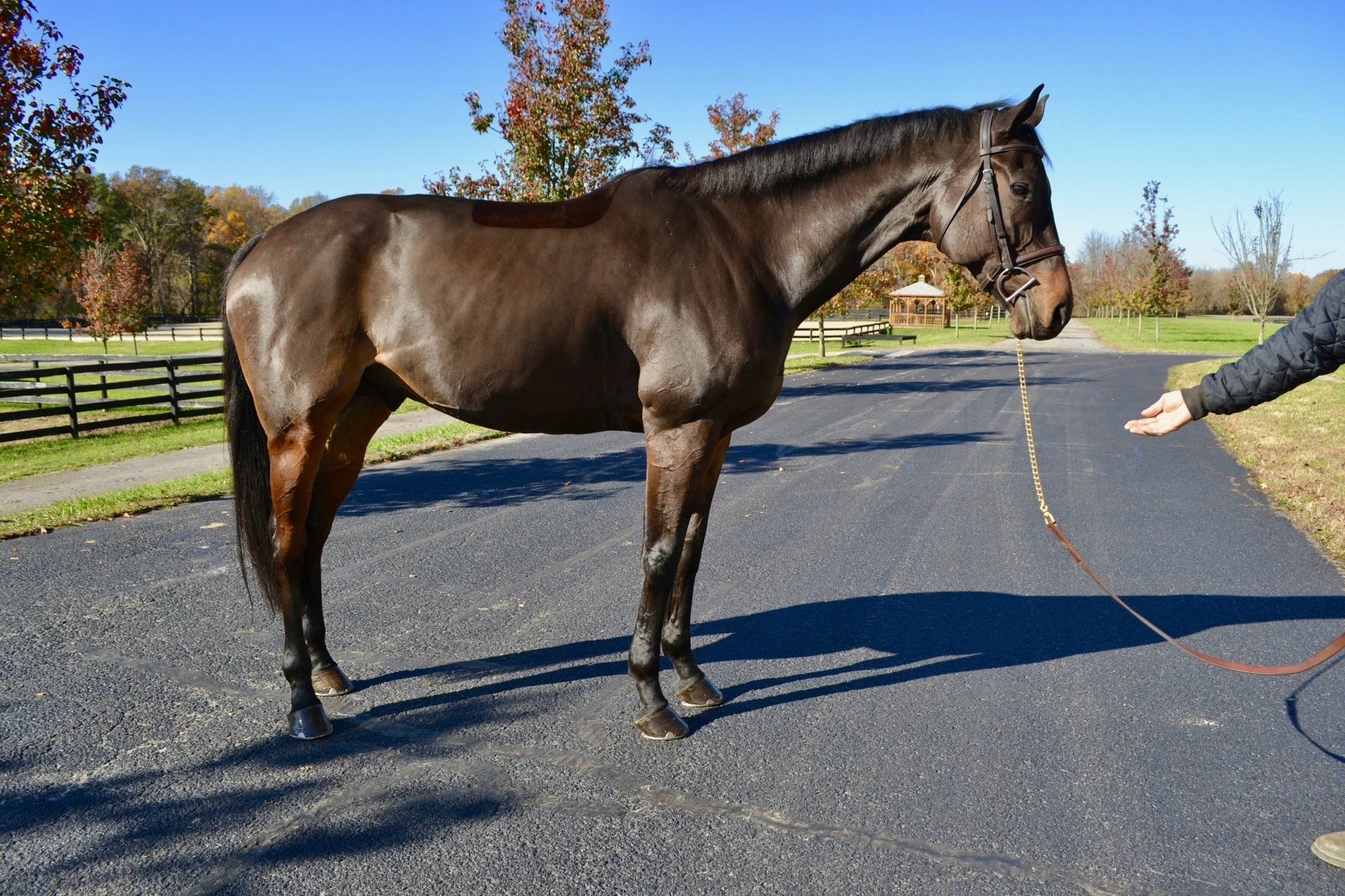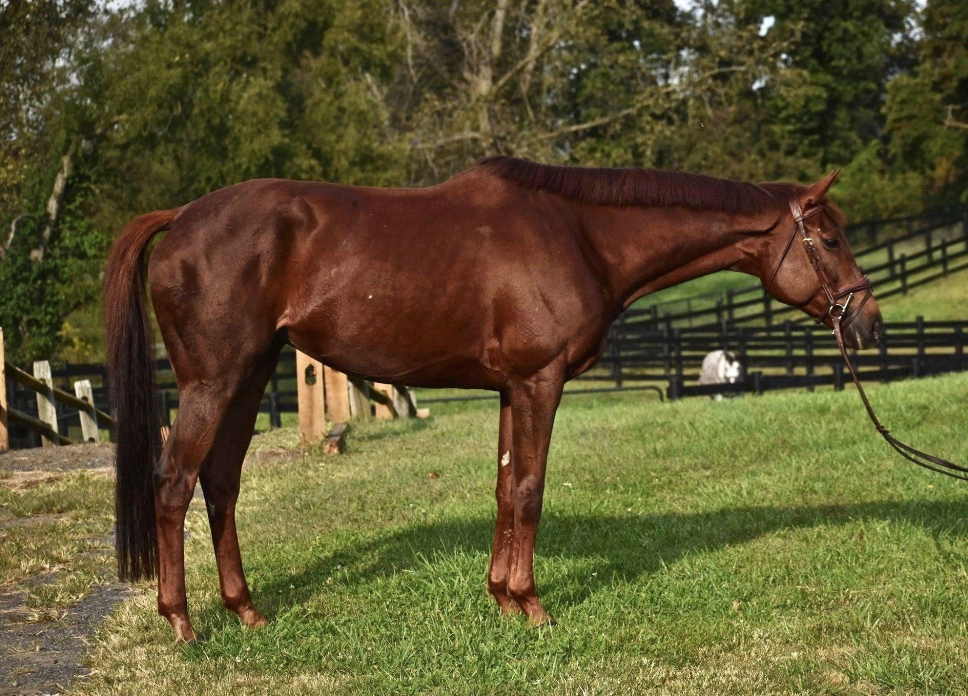Dawn is a lovely 16.1h big bodied 2019 American Pharaoh mare. After 4 starts she retired sound without injuries or ailments. She spent the winter turned out and has been in retraining for two months. She is currently WTC and jumping crossrails. She is a nice quiet type that is happy to try anything asked of her. Located in NJ. High fours to low five video below