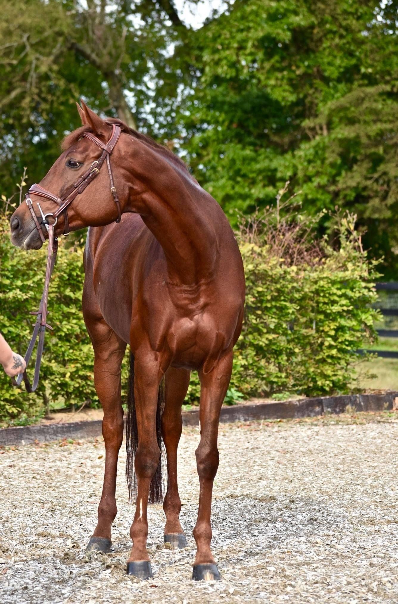 A typey bay gelding with gorgeous long legs and great conformation. This horse is a true gentleman. He is easy to handle on the ground and has a ground covering stride for riding.